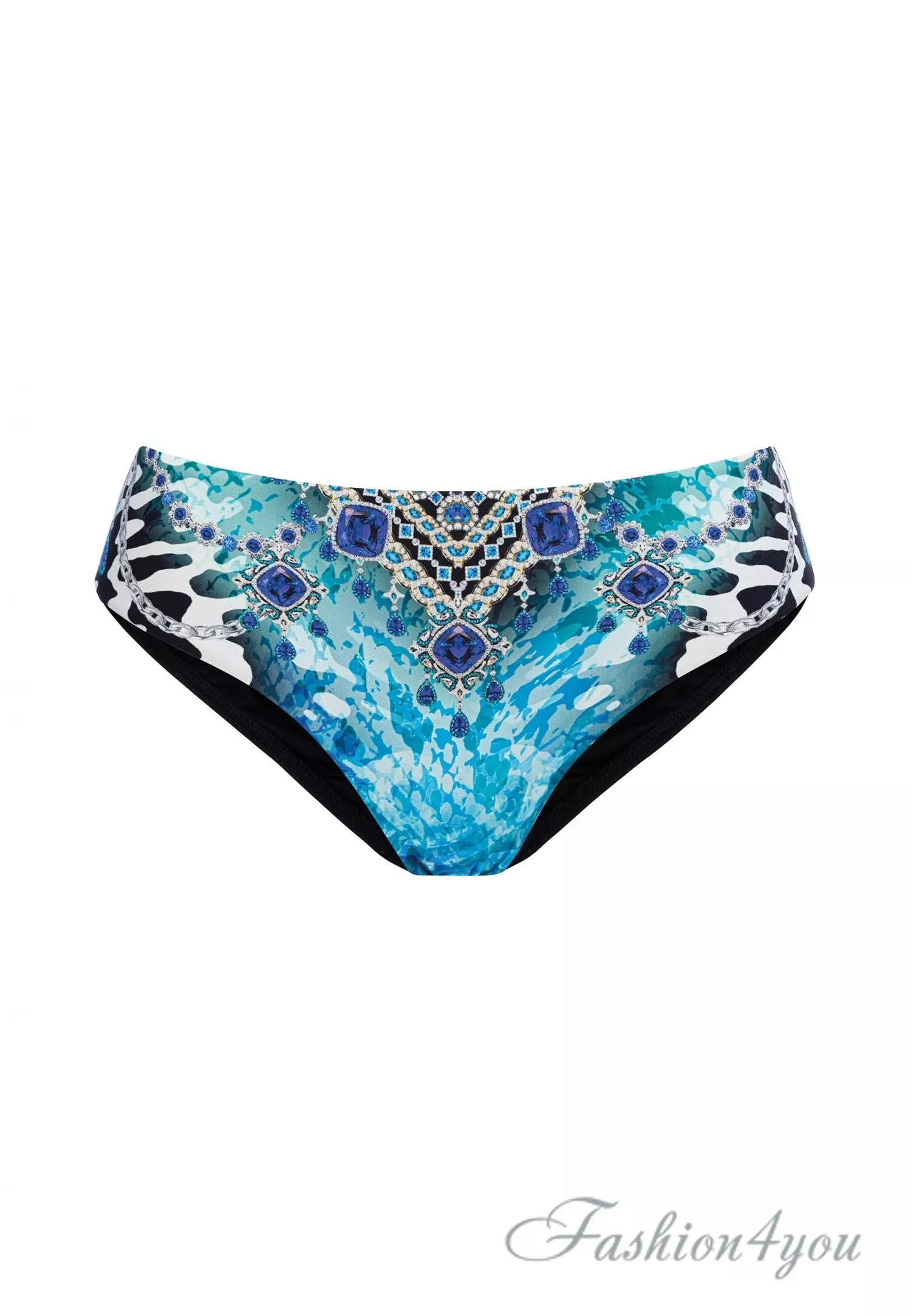 Окунитесь в прохладные глубины и всплывите на поверхность среди мерцающих капель-бриллиантов под лучами солнца. Наш эксклюзивный принт в серии OCEAN HEART представляет собой удивительное сочетание переливающихся оттенков голубизны, анималистических мотивов и роскошных драгоценностей. В центре внимания - причудливый узор, богатый тонкими деталями, создающими завораживающий 3D эффект. Для завершения неповторимого образа добавлены аксессуары в виде волшебных каплевидных подвесок из синих кристаллов. Женские плавки выполнены в классическом крое, полностью поддерживаемые подкладкой. Имеются классический вырез по бикини линии, а также эксклюзивный принт спереди.