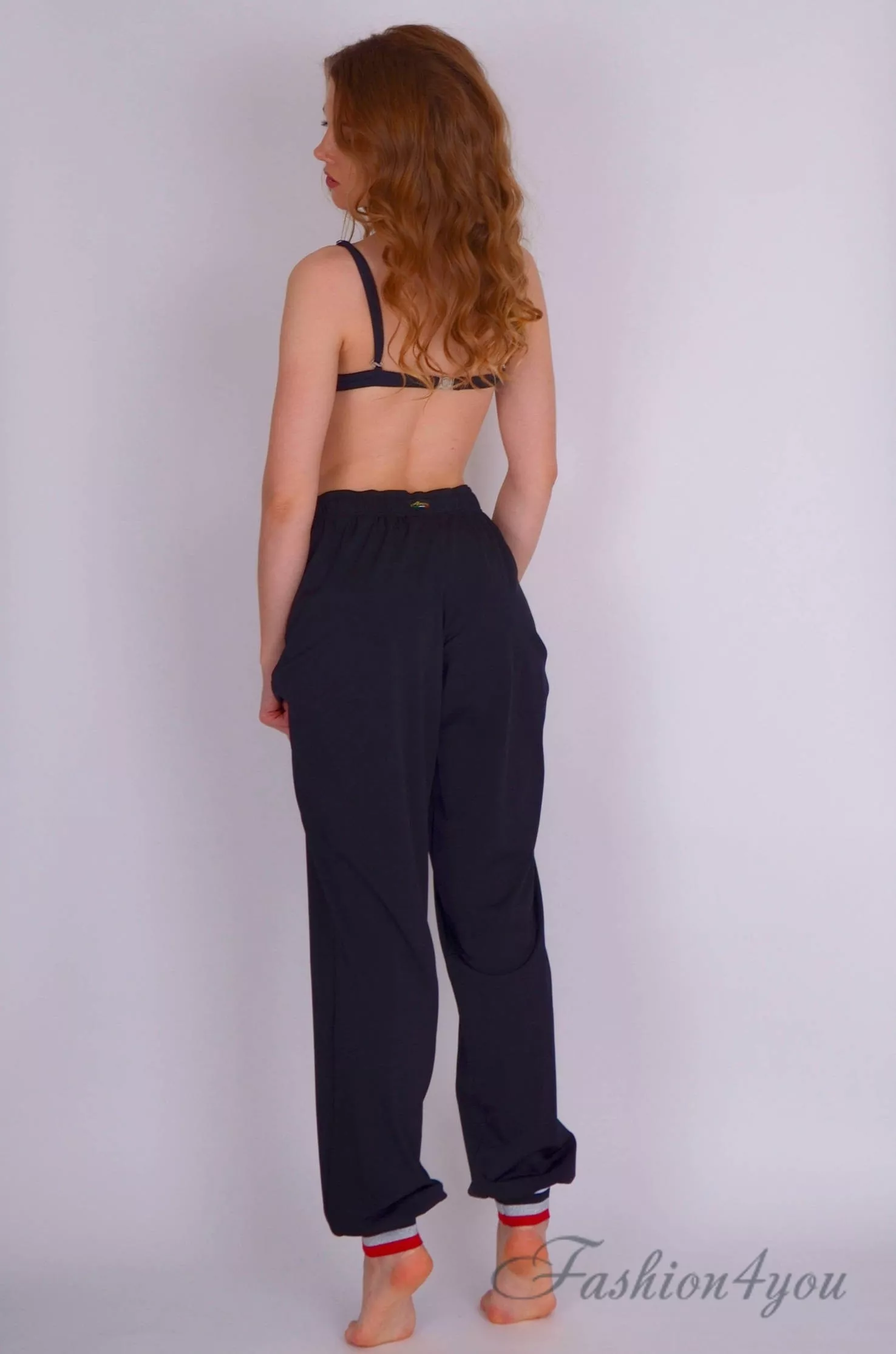 Модные брюки в восточном стиле «восточные шаровары». Модель свободного силуэта с подчеркнутым поясом на резинке, который образует мягкие складки. Широкие объемные штанины с манжетой на резинке на уровне лодыжки. Брюки выполнены в однотом черном цвете из 100% хлопка. Украшены вышивкой из пайеток на боковых карманах. Коллекция: Amarea 2020 Италия.